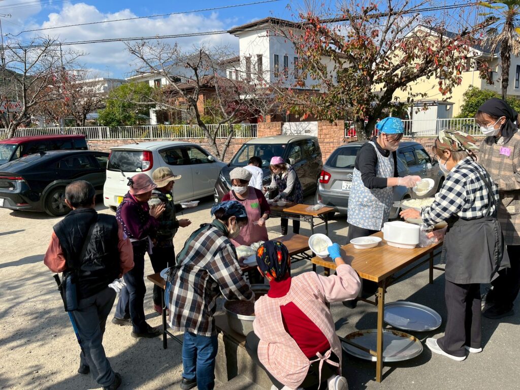 下山後は第三公民館にて、調理ボランティアの方々が心を込めて作ってくださったカレーをいただき、みんな笑顔いっぱいでおいしく味わいました。