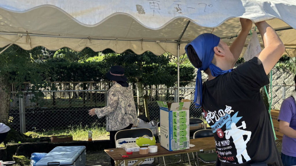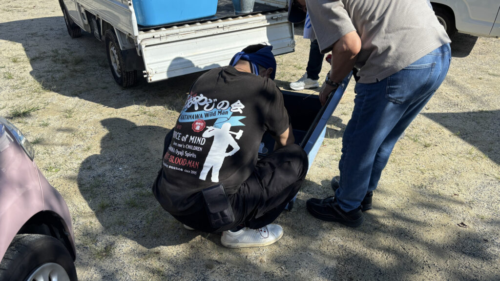 会場の片付けを行いました。観覧場所の片付け、テントの解体、軽トラへの積み込み、公民館での収納などを手伝いました。